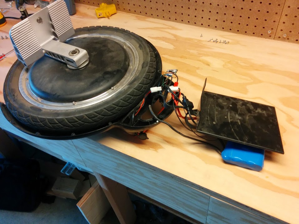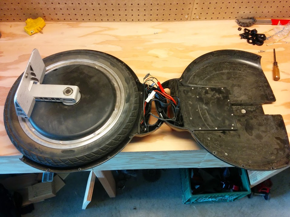 Getting started on this process, I opened up the case of the Solowheel by removing all of the screws around the rim and handle, and then removing the 6 screws above the footrest on the side without the power button.