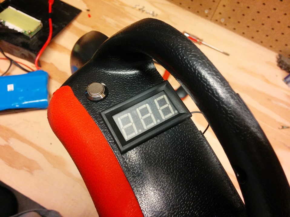 My idea was to modify the Solowheel to display the charge with better resolution. I looked into building a circuit which would light up a series of LEDs as a bar indicator, but that seemed like it would be too tricky to do properly. I ended up looking at some panel voltmeters and decided to go that route instead.